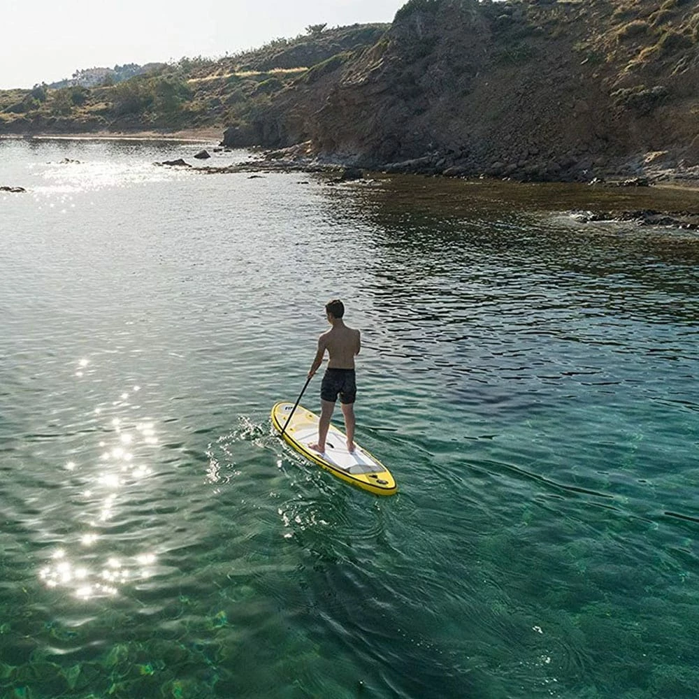 - Lieferumfang: 1 SUP im robusten Tragerucksack, 1 Paddel, 1 Finne, 1 Double Action-Pumpe, 1 Leash und ein Reparatur-Kit